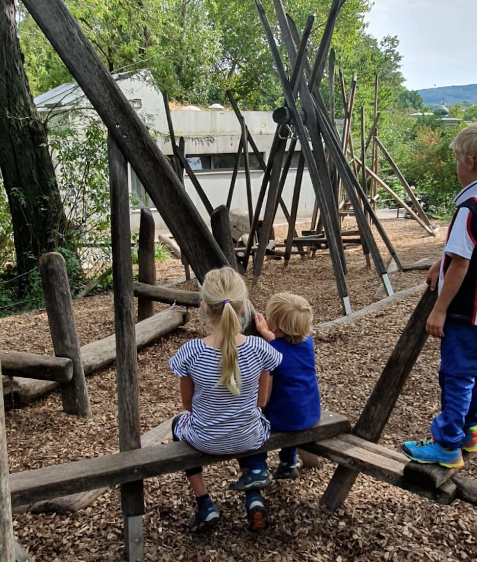 The “Kinderturnwelt” are different playgrounds in the whole area of the zoo. Children can collect an information booklet at the entrance (see pictures). There you find the different stations of the “Kinderturnwelt” parcours. At every playground a special stamp can be collected and at the end the children have their Wilhelma sports diploma.